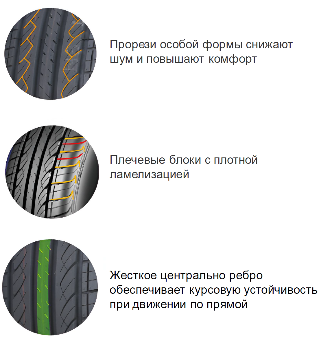 Жесткие центральные ребра повышают точность рулевого управления и устойчивость при движении на скорости, а также способствуют снижению сопротивления качению. - ? Контроль при маневрах