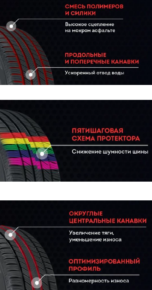 - Современная технология смешивания резины усиливает молекулярные связи в компаунде, улучшая сцепление на мокрой дороге и снижая сопротивление качению.